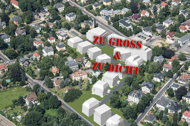 - Das heißt für uns, die geplanten Bauvolumen und Bauhöhen müssen deutlich verringert werden und sich an der TYPISCHEN Umgebungsbebauung orientieren.